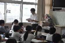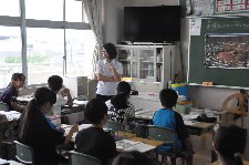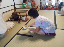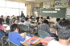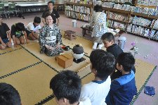 (7月10日) 「見てっ!できたっ!」、「作法って難しいな・・・」 社会科学習の一環として、地域の方を講師としてお招きして室町文化を体験しました。 普段、体験することのできない学習に子どもたちは真剣な顔で臨んでいました。