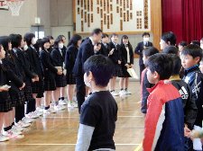 (3月13日) 『最高学年として 自覚を持って 行動してきました』 『全校のために、 考えて行動する大切さを 教えてくれました』 「すごく緊張したよ〜!」 「呼びかけ、うまくいったよ!」 金曜日の卒業式に向けて予行練習を行いました。 先週の月曜日から当日に向けて練習しています。 予行練習では、当日と同じように入場から一通り通して行いました。 緊張している児童もいましたが、スムーズに進めることができました。 卒業式まであと4日、細かいところを修正して 本番に望めるように指導したいと思います。 |