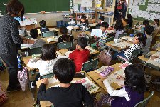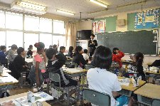 (10月18日) 4年生、5年生、6年生の学習参観が行われました。 4年生は各教科の授業を行いました。 5年生はPTA活動の一環として『おにぎりパーティー』を 6年生は夏休みに職場見学を行った報告会をしました。