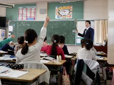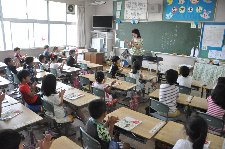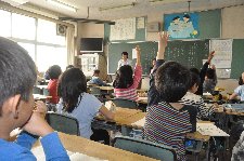 | (4月20日) 「ハイッ」「ハイッ」どのクラスの子どもたちも張り切って 学習をしていました。