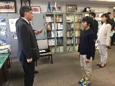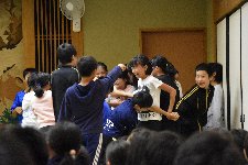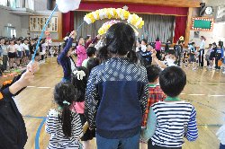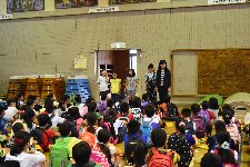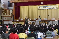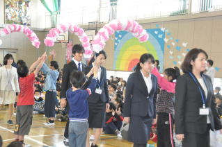 (4月19日) 全校で「1年生になったら」の合唱の中、花のアーチをくぐって 6年生と1年生が手をつないで入場してきました。 1年生は 2年生からは「あさがおの種」 3年生「ペンダント作り」 4年生からは「迎える会の招待状」 5年生からは「お手伝い券」 6年生からは「遊び券」のプレゼントをもらいました。 1年生はお礼に「だれにだって たんじょうび」の歌を歌いました。 |