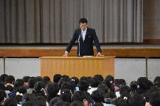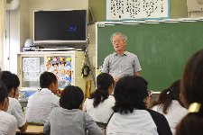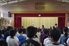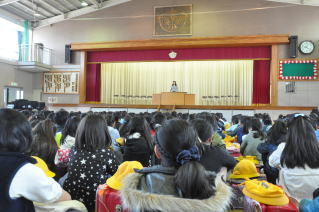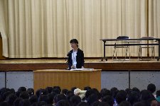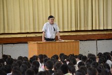 (12月18日) 「戦争って怖いな・・・」 「多くの人が原爆の被害に遭ったんだな」 地域にお住まいの世良先生を講師にお招きして、体育館で戦時中の話を聞くことができました。 現代では想像もつかないような数々の話に驚きを隠せませんでした。 今回お話を聞いたことで、平和について考える良い機会となりました。 |