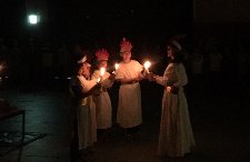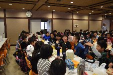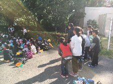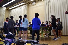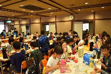 快晴でしたが、風が強かったため、室内での「キャンドルファイヤー」になりました。 みんなで仲良く「ジンギスカン」などを踊りました。