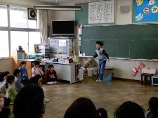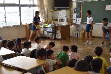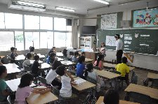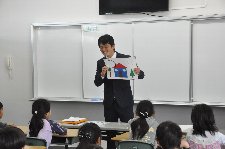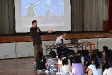 (7月12日) 「風車の中ってこうなっているのか。」 「スポーツはスケートが人気なんだぁ!」 『オランダってどんな国?』 オランダ出身の方を講師にお招きしてお話をいただきました。 スポーツや気候、文化についてクイズに参加しながら楽しく学習しました。 |