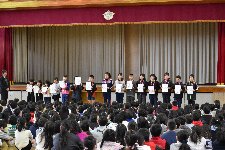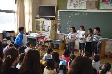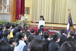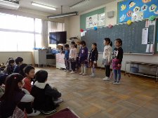 (3月1日) 「6年生、卒業おめでとう!!」 「上手に発表できたよ!」 3,4校時に卒業を祝う会を行いました。 各学年、6年生への感謝の気持ちをこめて発表をしました。 6年生からも全校のみんなに心のこもった言葉や歌のプレゼントがありました。