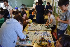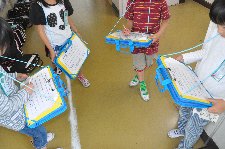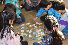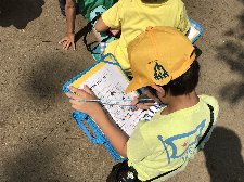 「あっちだよ。」「みんなで行ってみよう。」 班で協力する活動の2つ目。 発見したポイントの合計で競い合います。 ルールをしっかりと確認して優勝を目指しました。