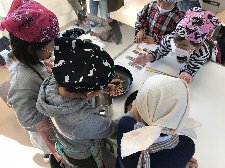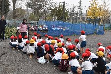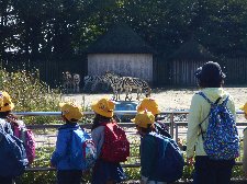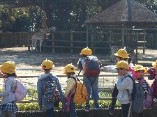 (10月26日) 「ひよこがいる?」 「あっ! キリンがいる!」 入学して初めての校外学習。 いい天気に恵まれ、たくさんの動物にふれあってきました。 お昼ご飯はみんなでレジャーシートを広げ、 おうちの方が作ってくださったおいしいお弁当をいただきました。
