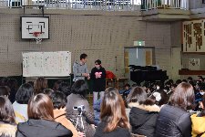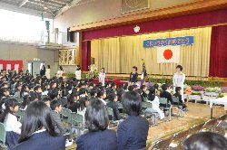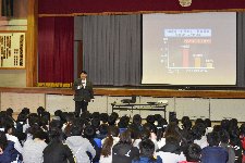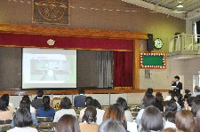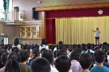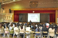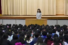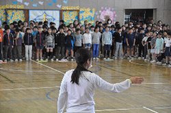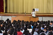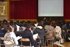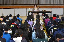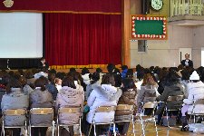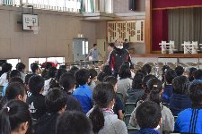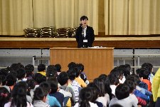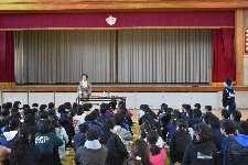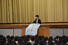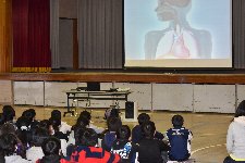 (2月02日) 「国によって喫煙の対応が全然違うんだね!」 「喫煙ってこんなに影響があるんだね!」 5校時に体育館にて健康教育教室が行われました。 今回は講師の方をお招きして、『たばこの害』についてお話をいただきました。 日本と外国とでの対応の違いや喫煙をすることでの影響などわかりやすく教えていただきました。 |