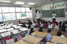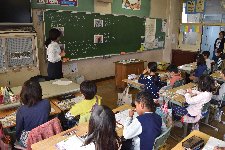 (11月1日) 外国語及び外国語活動4年目の研究報告会が行われました。 全国から先生方が集まり、英語の授業を参観していただきました。 本校では、3年生、4年生、5年生、6年生が授業を展開しました。 参観してくださった先生方からは、「英語が身についている。」 「しっかり学習している。」等の お褒めの言葉をいただきました。 |