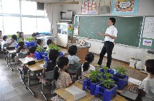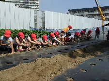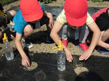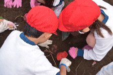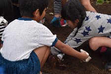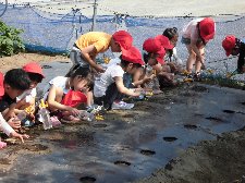 (5月19日) 2年生が生活科の勉強で落花生の種を植えました。 「いい匂いがする〜」、「アーモンドを植えるの?」など新たな発見をした種植えでした。 2学期の収穫まで大事に育てて欲しいですね。 |