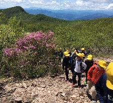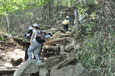 (5月11日) 前日の天気がうそのような快晴。3年生は校外学習で筑波山登山をしました。 昨日の雨でぬかるんでいるところもありましたが、全員で登り切ることができました。