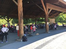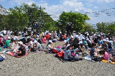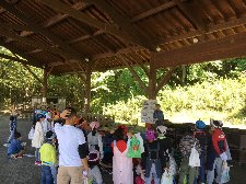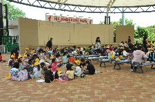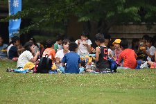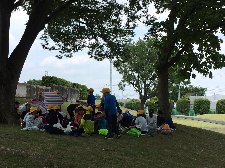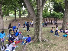 「お弁当、美味しかったね。」「もうすぐ、林間学園が終わるね。」 工場見学後は近くの運動公園で昼食を取りました。