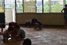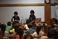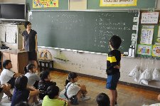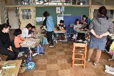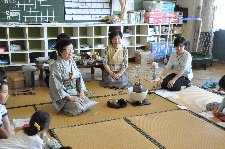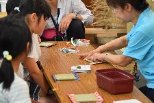 (7月4日) 「昔の家って涼しいね!」「魔除けの飾り発見!!」 出発の会は雨でしたが、活動中は汗が出てくるほど天気が回復しました。 『茶道体験』・『千代紙ろうそく作り』・『畳コースター作り』 3つの体験コースに分かれて前半の活動をしました。 後半は班ごとに計画を立て、昔の生活について見学しました。 ご協力ありがとうございました。 |