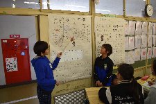 (1月10日) 「ここの交差点は危ないよ!」 「集合時間に間に合うようにしようね!」 南流タイムを使って今年度、最後の地区児童会が行われました。 今回は@メンバーの確認、A登下校時の並び方の確認、B通学路での危険箇所の確認 以上の3点を中心に活動を行いました。 |