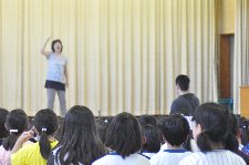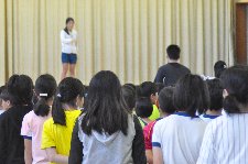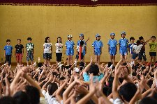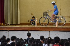 (6月28日) 「ピンを倒さずに進んでるー」「がんばれー! がんばれー!」 7/6の「交通安全こども自転車千葉大会」に向けて 児童会を中心に自転車部を励ます会が行われました。 演技披露や道路交通に関する○×クイズなどが出題され、会場は盛り上がりました。 最後に6年生を中心となった応援団と一緒にエールを送りました。 |