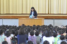 (6月14日) 全校集会では、始めに陸上部、健歯コンクールポスターの表彰及び報告がありました。 校長先生から 「ご家庭、地域、学校、それぞれの環境で子どもたちを大切に思う大人から宝物として 守られています。ただ、ニューズになるような悪いことを考えている人がほんの少しだけ いますので『いかのおすし』を守りましょう。自分の身は自分で守りましょう。」 という話がありました。その後、青少年補導員の方からもお話をいただきました。 生徒指導部の先生からは安全な校内の過ごし方や読書について話がありました。 |