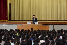 (5月8日) 1年生が入学して初めての全校集会がありました。
