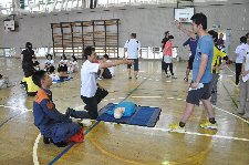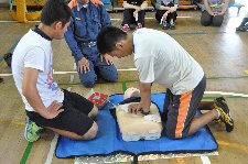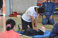 (5月31日) 6月からのプール指導に向けて職員研修を行いました。 流山市南消防署の方をお招きして救命救急法やAEDの使い方についてご指導いただきました。 |