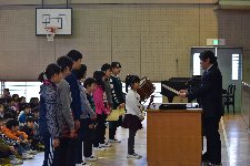 (12月22日) 「2学期はいろいろな行事で頑張りました。」 「3学期も様々なことを学んでいきたいです。」 平成29年度終業式が行われました。 終業式の前には表彰式、表彰の報告、友遊スポーツランキングの表彰が行われました。 終業式では、 学年の代表児童が2学期を振り返って発表を全校の前でしました。 校長先生の話では「2学期を振り返って、気づいたことを3学期に生かそう」ということで、 学校目標に合わせて全校で振り返りをしました。 生徒指導の先生からは「校舎内での過ごし方、冬休みの過ごし方」について話がありました。 終業式が終わってからは各教室で通知表が配られ、 満面の笑みで子どもたちは下校していきました。 3学期に元気な姿で登校してくるのをとても楽しみにしています。 実りある冬休みにしてほしいと思います。 |