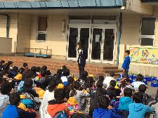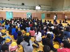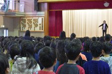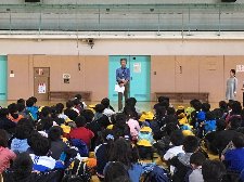 | (11月13日) 「6年生になるとお仕事の見学に行くのか〜」 「体力作りに励もう!!」 今月の全校集会は校長先生から『将来のお仕事』についてお話をいただきました。 職業体験で学んだことについて、6年生の代表の子に発表してもらいました。 生徒指導の先生からは、今月の生活目標『進んで体力作りをしよう』についてお話をいただきました。 |