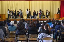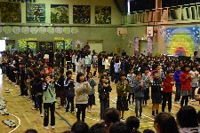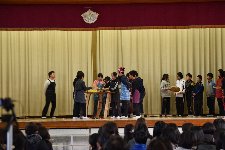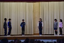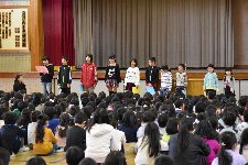 (2月27日) 「一緒に活動できて、とても面白かったなぁ!」 「発表はちょっと緊張したな!」 5,6校時に体育館に保護者の方に向けた『感謝の会』を行いました。 子どもたちが中心となって企画・運営をしました。 親子でのジェスチャークイズ、伝言ゲームなど盛り上がりを見せました。 6年生の発表では、6年間の思い出を劇にして発表しました。 発表の最後に2曲、合唱披露をしました。 保護者の方にはお忙しい中、参加いただきありがとうございました。 |