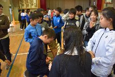 (1月30日) 「こまを上手に回せたよ!」 「けん玉、うまく乗せられたー!」 1校時から4校時まで体育館や教室を使って昔遊びを体験しました。 地域や保護者の方、70名以上の方にご協力いただいて活動しました。 けん玉やこま、かるた、お手玉など様々な遊びをしました。 地域の方、保護者の方にたくさんのご協力をいただきました。 ありがとうございました。 |
