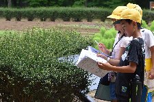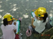 (6月16日) 「まつぼっくり、発見!」「あっちにあじさいが咲いてる。」 生活科の学習で中央公園に探検に出かけました。 ワークシートに見つけたものをチェックしながら公園内を散策しました。