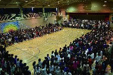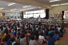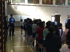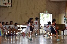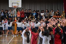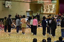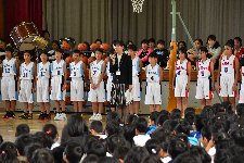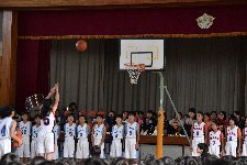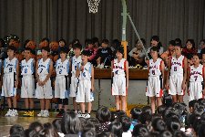 (10月31日) 「頑張れー! 頑張れー!」 「ナイス!シュート!」 南流タイムの時間にミニバスケットボール部を励ます会を行いました。 選手がドリブルをしながら入場し、シュートをすると会場からは大きな拍手が起きました。 演技披露では、パスの仕方やシュート対決などを見ることができ、とても盛り上がりました。 最後に音楽部の演奏に合わせ、南流応援歌で全校応援をしました。 |