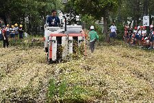 (9月27日) 総合的学習の一環として5月に田植えをした『南流米』。 4ヶ月が経ち、大きな穂を実らせました。 本日、地域の方を講師にお招きして稲刈りを行いました。 作業の様子に子どもたちも興味津々でした。 今回刈り取った『南流米』は、10月におにぎりにしていただきます! |