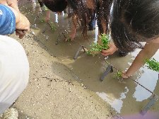 (5月16日) 総合学習の一環として5,6校時に5年生が田植えをしました。 地域の鈴木先生から田植えの仕方をご指導頂きました。 泥の感触を楽しむ子どもたちが多くいました。 しっかりと成長を見届けていきたいですね。 |