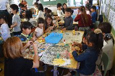 (11月27日) 「見て見て!面白いのができたよ!」 「うまく手形を押したら像みたいになったよ!」 保護者の方との活動として『手形アート』を行いました。 子どもたちは好きな色の手形を押しながら作成に取りかかりました。 完成した絵はフォトフレームに入れて持ち帰りをする予定です。 保護者の方々にはお忙しい中、ご協力いただきありがとうございました。 |