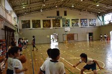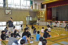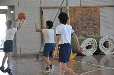 (6月5日) 「パス!パス!」「マークがはずれているよ!」「シュート!」 体育館に大きな声が響いています。毎日、子どもたちは、熱心に練習に取り組んでいます。 |