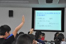(7月26日) 校医の徳重先生を講師としてお招きし、 『アレルギー対応、エピペンの使用について』の研修会を行いました。 DVDでの実例を参考に話し合いをしたり、エピペンの模擬体験をしたりしました。 |