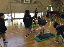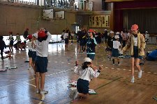 (12月12日) 「前跳び50回頑張るぞ!」 「仙人目指してたくさん跳ぶぞ!」 今週から体力作りの一環として短縄週間が始まりました。 友遊体育委員会が中心となって低学年になわとびの技を教えています。 どの子も自己ベストを目指して縄跳びカードにそって技を磨いています。 |