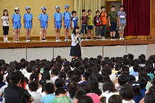 (7月20日) 「1学期、楽しかった〜」 「明日から夏休みだー!」 平成29年度1学期の終業式が行われました。 1学期頑張ったこととして、各学年の代表児童から発表がありました。 校長先生や生徒指導の先生からは夏休みの過ごし方などについて話がありました。 子どもたちは、真剣な顔つきで話を聞いていました。 |