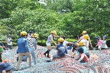 (5月18日) 心配された天気ですが、雨に降られることもなく、無事に行ってきました。 「おもしろそう。」「最初、どこにいく?」「わぁ、こわーい。」「おもしろい!」 アンデルセン公園で楽しそうな声が聞こえてきました。 それぞれのグループで仲良く活動をしていました。 |