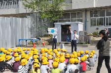 (5月19日) 今日は1年生の防犯教室を行いました。「いかのおすし」のお話をお聞きしました。 最後には移動交番の中を見学させてもらいました。 「すごーい。」「かっこいい!」子どもたちの中から歓声が上がりました。 |