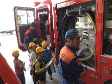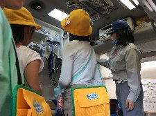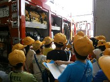 (9月11日) 「消防車っていろいろ装備が積んであるんだな〜」 「救急車の中ってすごいなぁ〜」 社会科学習の一環で消防署に見学に行きました。 普段見ることのできない消防車や救急車の中を見ることができ、子どもたちは興味津々でした。 実際にストレッチャーに乗る体験をすることができました。 最後に質問タイムが設けられ、気になることをたくさん質問していました。 |