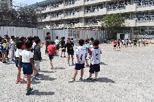 (5月31日) 「腕をふると走りやすいよ。」 「やったー!」 「ゴールしたっ!」 さわやかペア学級ごとにチームになり、タイムを競い合います。 低学年の子どもたちは、お兄さん、お姉さんから上手に走るアドバイスをもらいました。 みんな笑顔で、楽しくリレーを行いました。 |