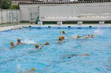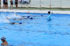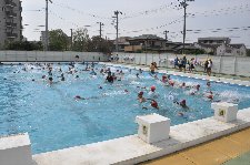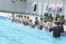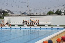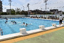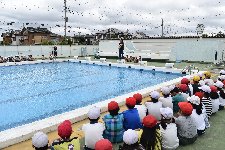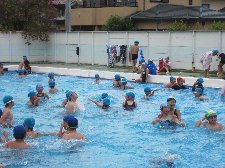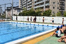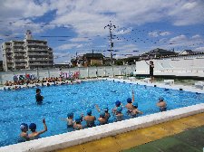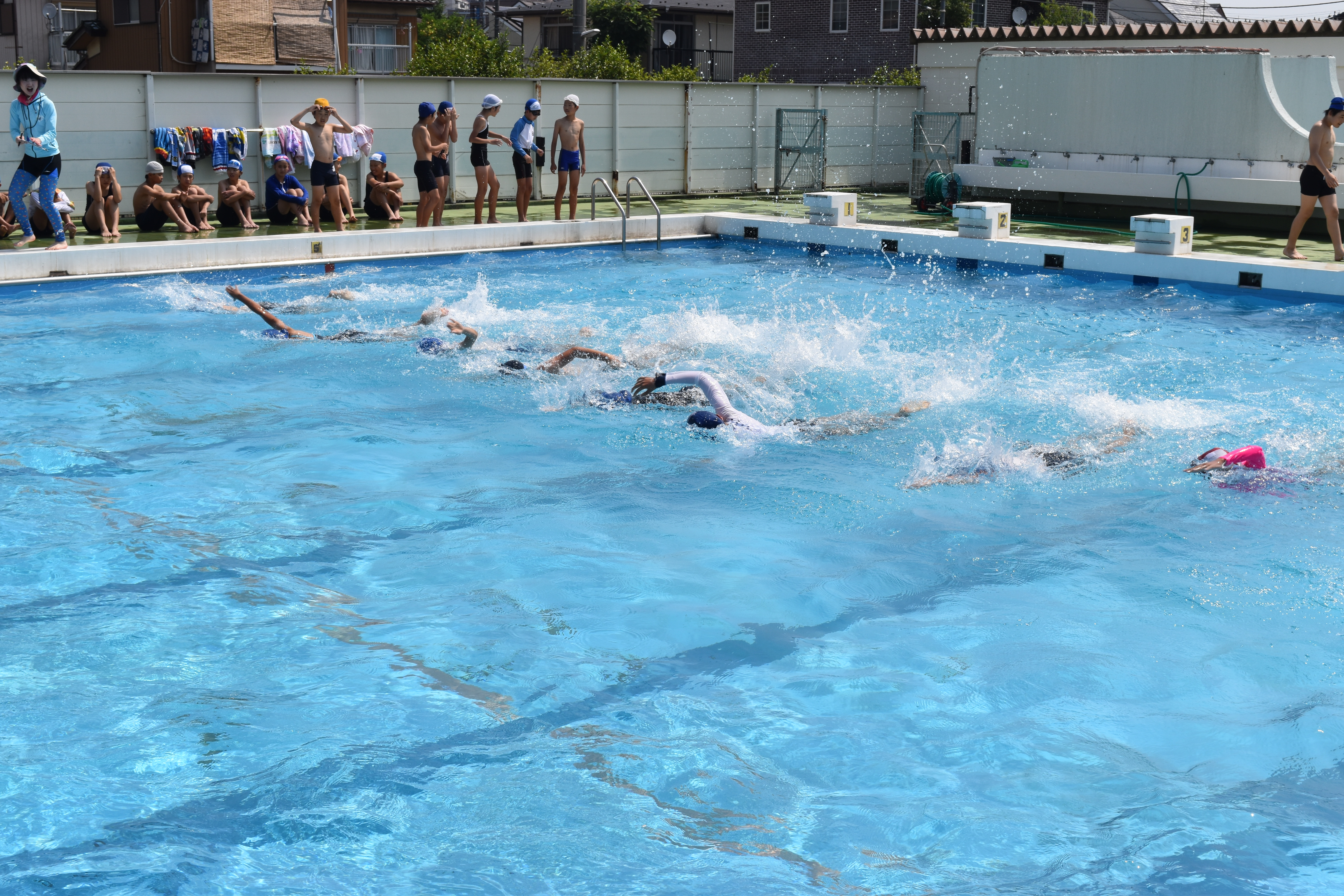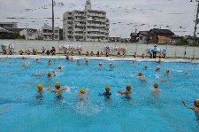 (6月8日) 「これからプール開きを始めます!」 実行委員の声でプール開きが始まりました。 「息継ぎができるようになりたいです。」「25M泳げるようになりたいです。」 目標を発表して、やる気は十分です! 安全に気をつけて次回から学習していきます。 |