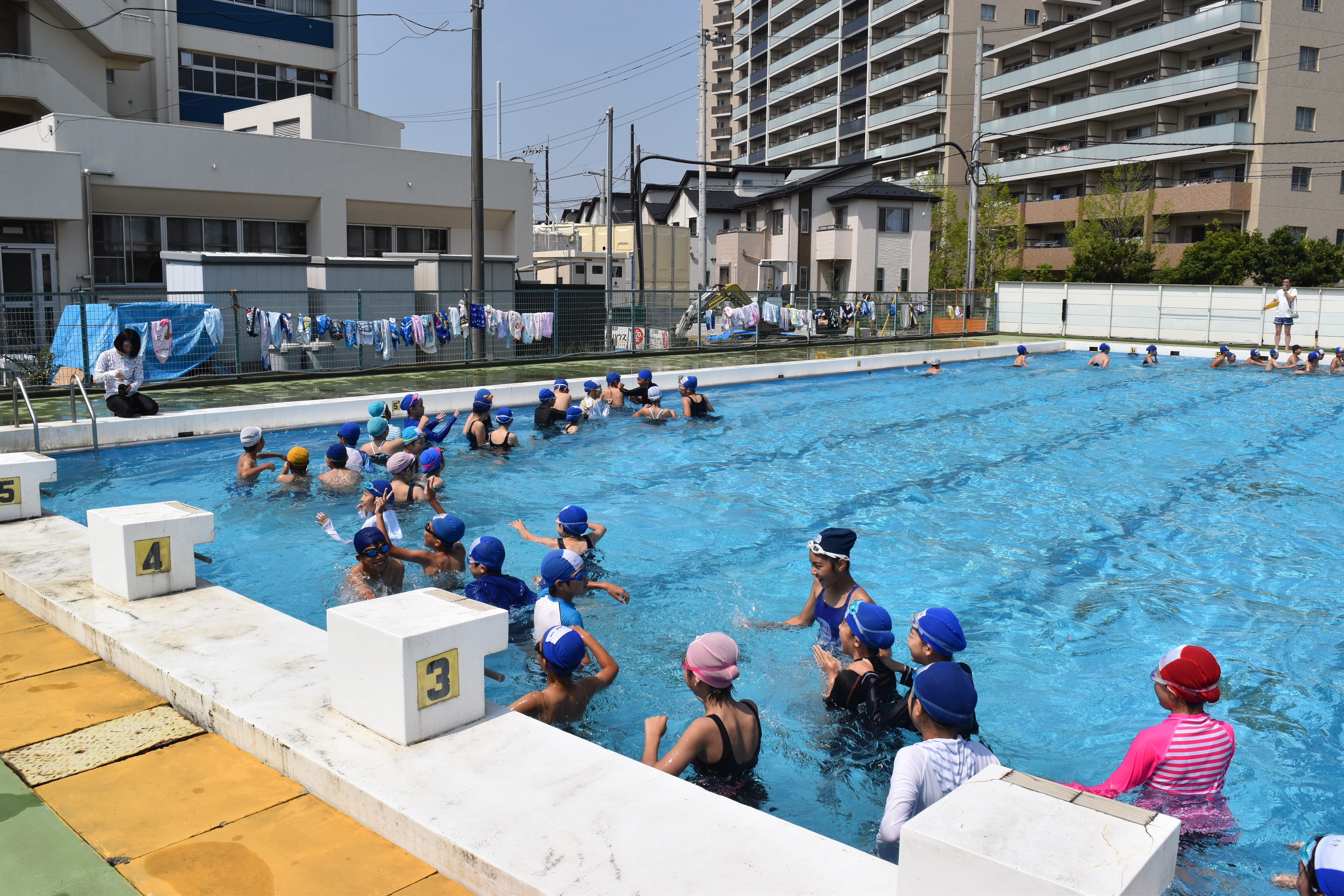 (6月20日) 「久しぶりのプールだー!」「今日は暑いから、入れて気持ちよかった。」 5・6校時に晴天の中、プール開きと水泳指導が始まりました。 水慣れを行った後は練習コースの確認を行いました。 最後に学年全員で『波』と『流れるプール』をしました。 |
