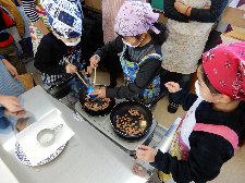 | (11月24日) 「バターピーナッツってこうやって作るんだね!」 「お家でも作ってみたいなー」 落花生2日目が行われました。 今回は3・4組の子どもたちがバターピーナッツを作りました。 お家の方の協力を得ながら上手に作ることができました。 2日間、保護者の方にはご協力いただき、ありがとうございました。 |
