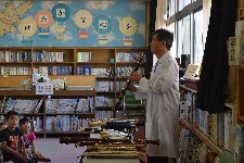 (6月5日) 「あっ!この曲知ってる!」「聞いたことがあるよ。」「いい曲だね。」 リコーダーの学習を始める前に、中橋先生から「リコーダーの説明」や 「吹き方のポイント」についての講習会がありました。 「すっごい小さいリコーダーだね。」「大きさで音が変わるんだね。」 リコーダーの種類の多さに子どもたちは驚いていました。 |