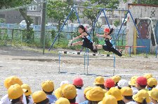 (6月19日〜6月23日) 「おしい、あともう少しだったのに・・・」「最後までがんばるぞ!」 今週は『長縄選手権』週間です。学年の友達を集めてチームを作ります。 3分間でどのくらい跳べたのかを競い合います。学年の1位を目指して記録に挑戦しています。 |