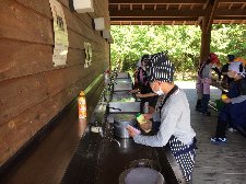 2日目は班の友達と協力して「カレー作り」、「オリエンテーリング」を行います。 |