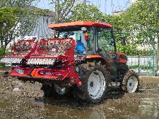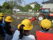 (5月12日) 「すごい!」「かっこいい!」大きなトラクターがしろかきをしている様子を見学しました。 |