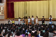 (4月7日) 今年度は181名の1年生が入学しました。 緊張した面持ちの子どもたちは6年生の学校紹介の劇で 気持ちが和んでいました。 |