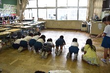 (6月24日) 土曜参観が終わった後に第2回避難訓練と引き渡し訓練を行いました。 今回は『地震が起き、児童だけでの帰宅が困難な場面』を想定して行われました。