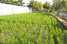 (7月26日) ビオトープの近くにある田んぼ以外にも、 校庭などにある畑にはたくさんの作物が成長してきています。