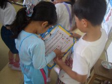 (5月30日) 「南流山駅に行ったよ。」 「つばめの巣を見つけたよ。」 「消防車と救急車を見せてもらったよ。かっこよかったー。」 2年生は学区探検に行って、たくさん宝物を発見しました。 教室で発見したことをカードにまとめました。 |